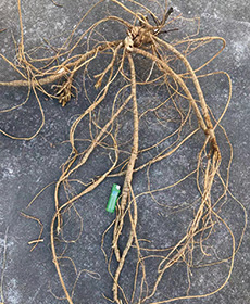 劣質(zhì)苗結(jié)薯特點(diǎn) 收獲期主根為木質(zhì)薯,其他分根薯細(xì)小,整棵重量少